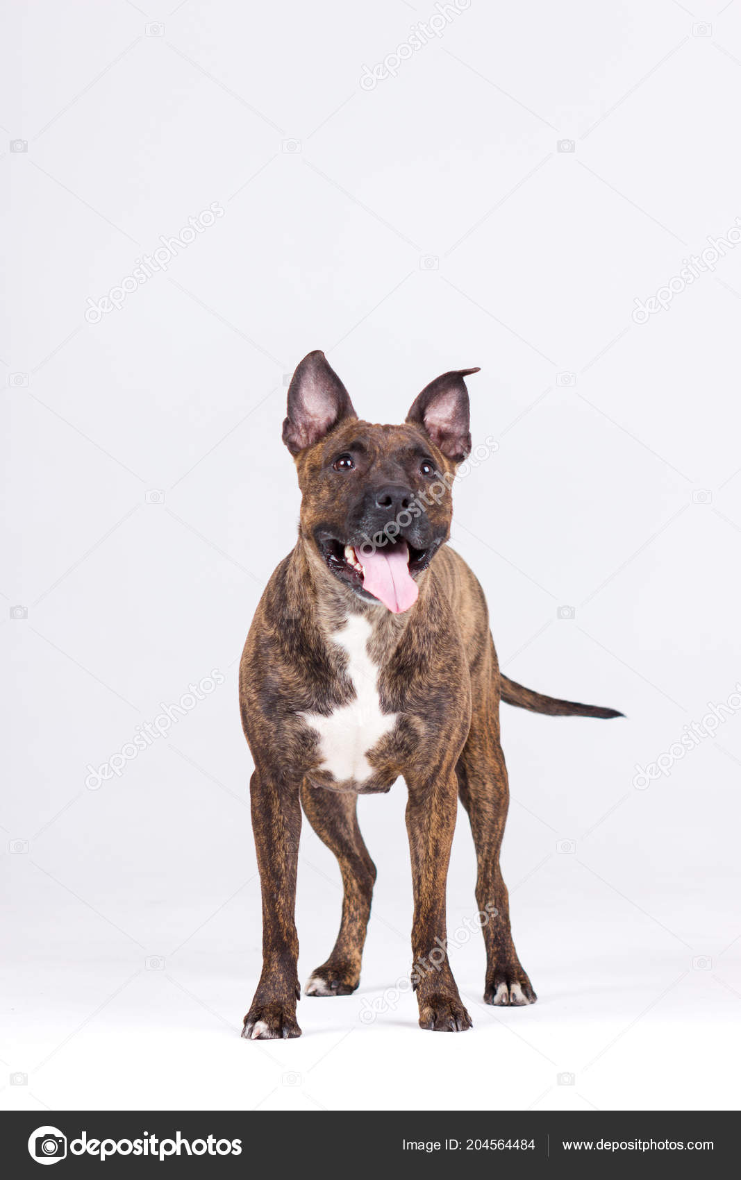 tiger american staffordshire terrier big cropped ears downs looks forward stock photo image by c svetlanistaya 217687830