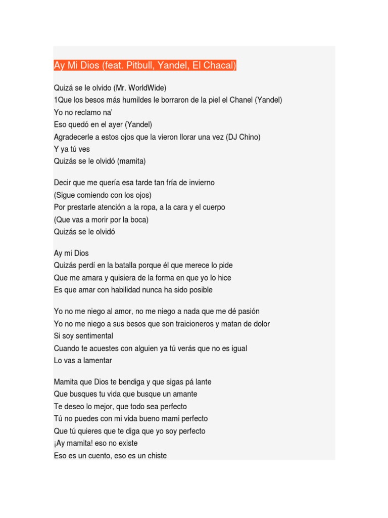 ay mi dios letra yandel ft pitbull
