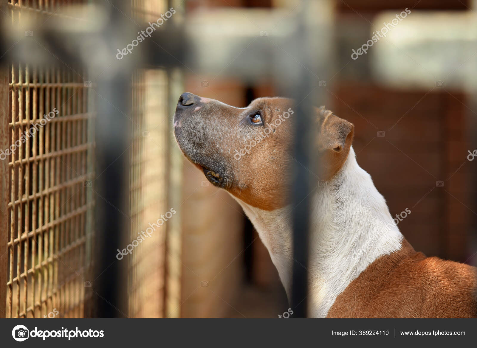 https depositphotos com 389224110 stock photo dog pitbull bars shelter html