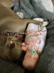 owners of the world s biggest pit bull hulk let 12st beast kiss cuddle and watch over their three month old son