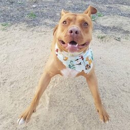 red nose pitbull with red bandana