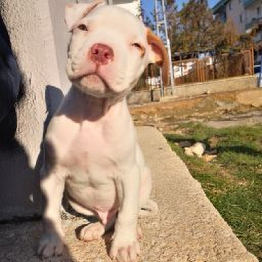 white red nose pitbull with blue eyes