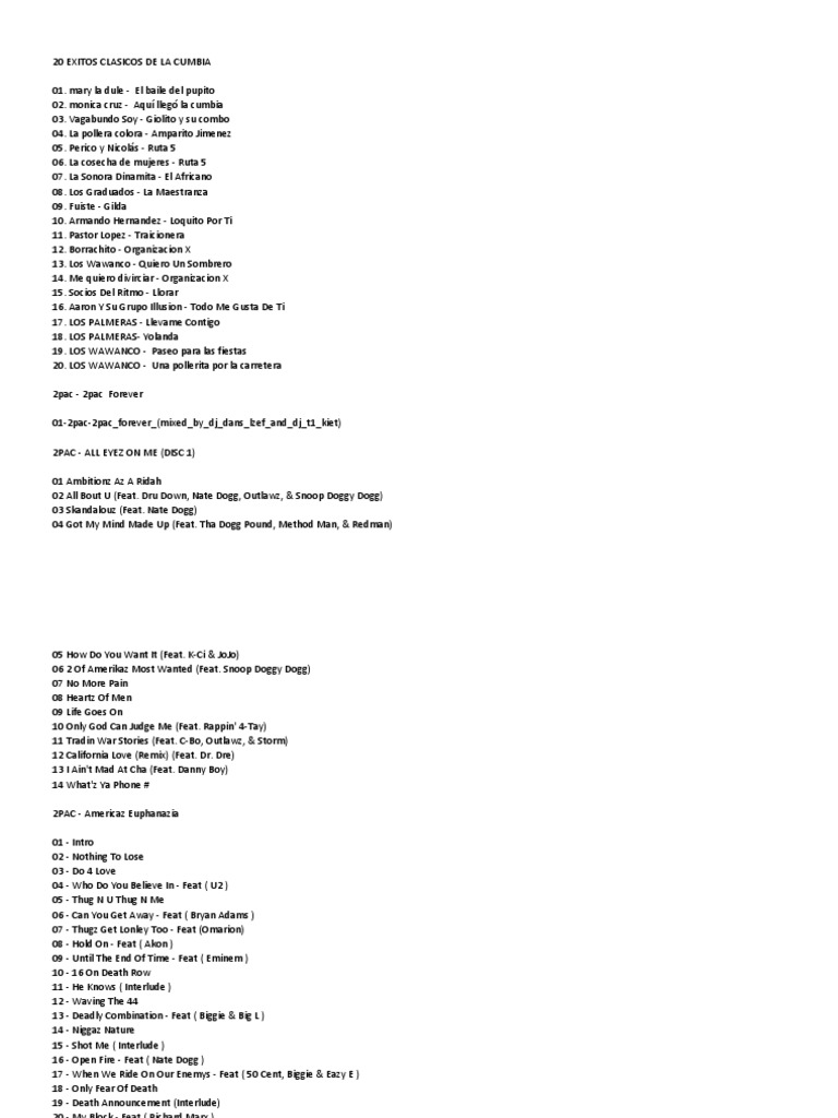 entire music list by artist